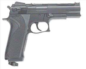 air pistol. Uses standard CO2 gas cartridges