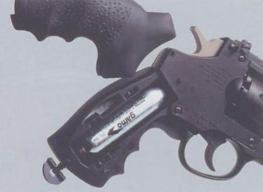 cylinders found in most solid frame revolvers, only they hold pellets, not