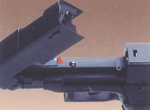 for firm control. 3 dot position aiming. Sighting becomes easier with two white dots on the rear sight and one on the front. Just line them up.
