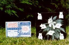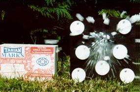 "Zapshots" are the little animal silhouette targets. They are a novelty target but they are certainly not "toys!" There are five different shapes, 50mm at their longest point and based on a 30mm circle. When using these targets, the shooter instinctively "searches" for the centre of the target. Very tricky!