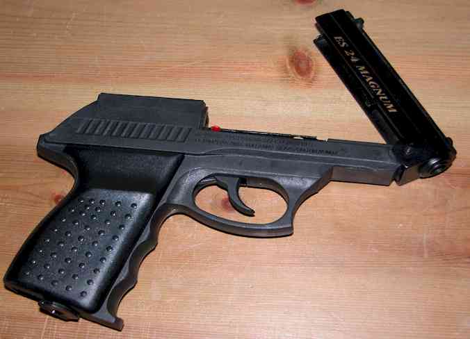 The ES 24 air pistol has a 12 BB shot magazine and a single .177 shot option